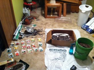 In all I have 10 lights, 3 heat mats, a ton of seeds, dirt, 1 little greenhouse and very little room. I think I’ll make it work though.